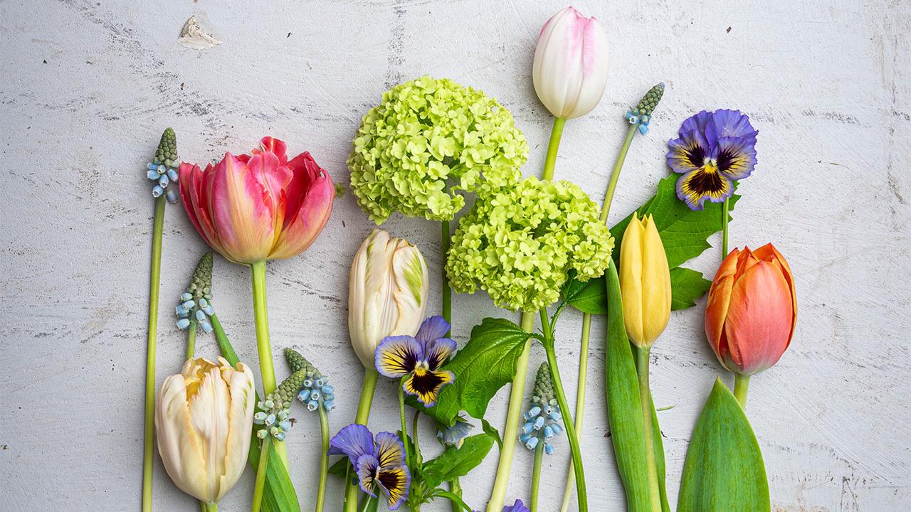 Under våren är anemon, ranunkel, tulpan, hyacint, narciss och pärlhyacint som allra bäst. Gärna i sällskap av årstidens skira grönska och blommande kvistar såsom mimosa och vaxblomma.