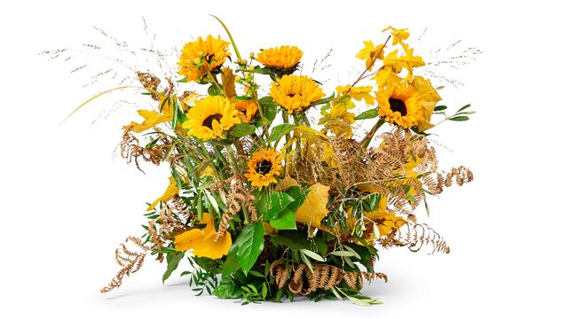 I en blomsterdekoration får varje blomma sin egen plats. Ni kan välja en dekoration som harmoniserar med blommorna som pryder kistan eller urnan, eller kanske en som återspeglar den avlidnas personlighet. Blomsterdekorationer kan ge uttryck för många olika känslor – de kan vara prydliga, lekfulla, sobra, harmoniska – så välj en som passar just ert avsked.