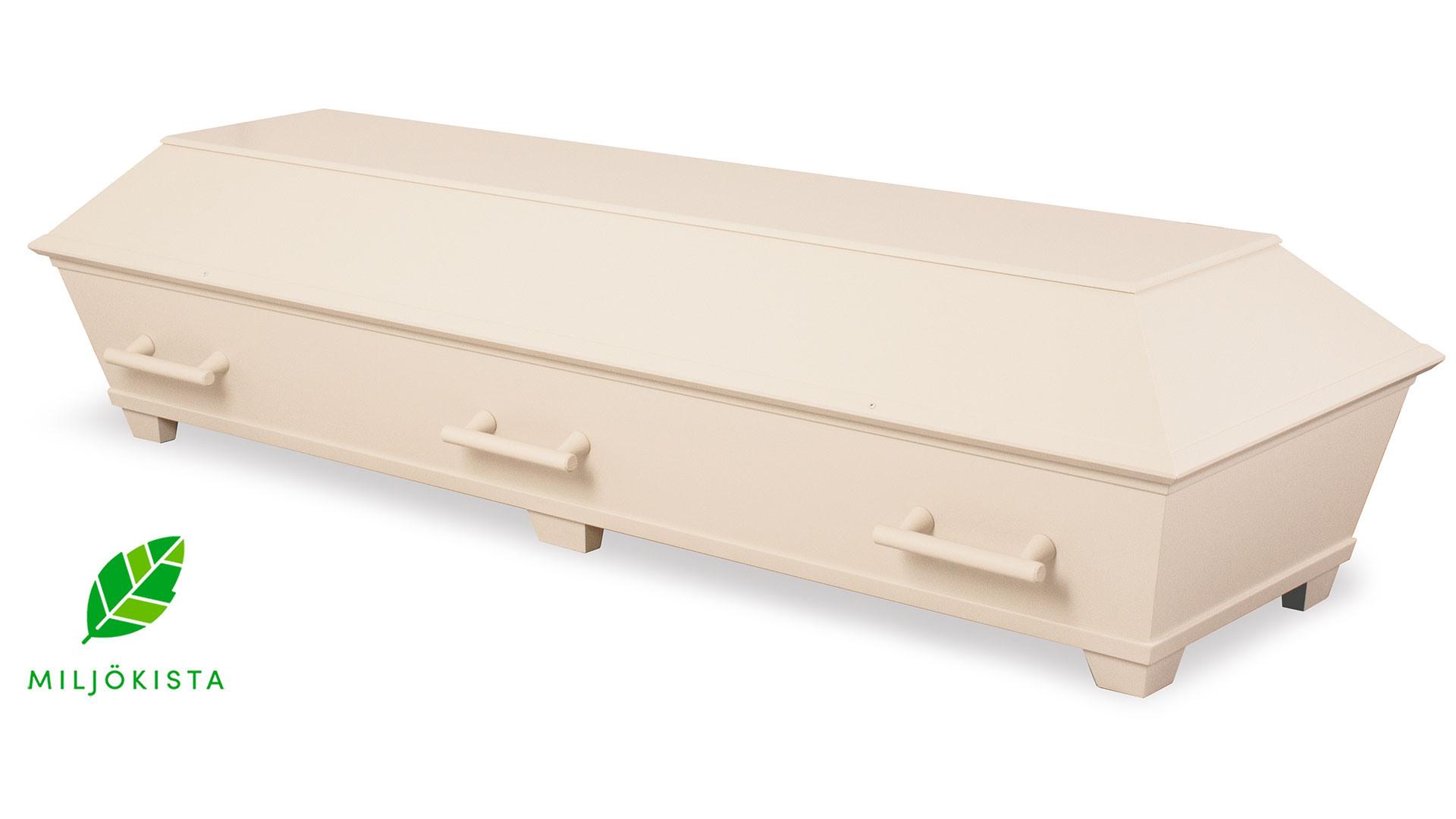 Tidlös är en stilren miljökista tillverkad av möbelskiva. Denna variant är målad i en ljust sandfärgad kulör. Inredningen består av en vadderad bädd, klädda sidor, kudde och mjukt, vadderat täcke med lakansflik. Textilierna är av 100% återvunnen polyester. Lockets insida är oinrett. Kistan finns även i större storlekar (mot pristillägg).7 695 kr