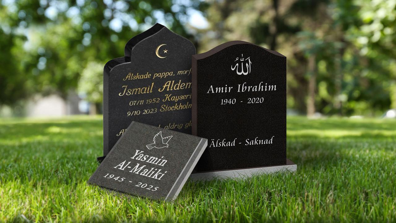 Vi erbjuder även hjälp med gravsten och kan ordna med både en helt ny sten eller komplettering av en befintlig sten med text och/eller dekor.