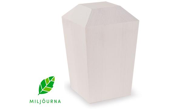 I vårt urnsortiment finns något som vi kallar Miljöurnor. De är speciellt framtagna utifrån en helhetssyn som inkluderar medvetna val av trä, färg och lim. Dessa urnor är märkta med en speciell symbol, ett grönt löv, för att det ska bli enklare för er att kunna se vilka de är. Läs mer om våra Miljöurnor här.