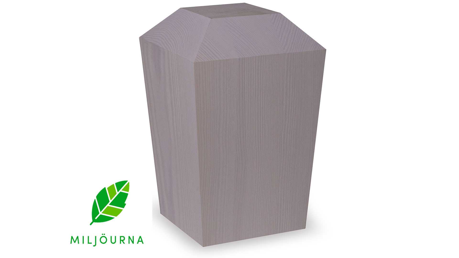 Stilren gråpigmenterad urna där träets naturliga struktur är synlig. Tillverkad av massiv furu. Urnan är förgänglig och lämplig för gravsättning.2 995 kr