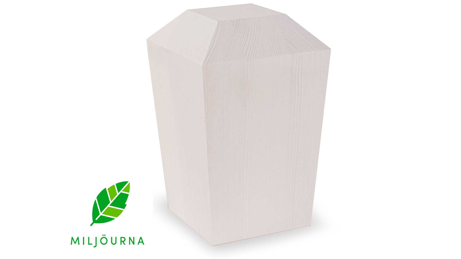 Modern är en stilren urna tillverkad av massiv furu och är 100% nedbrytbar. Denna variant är vitpigmenterad och träets naturliga struktur är synlig. Urnan är förgänglig och lämplig för gravsättning. Levereras med sänkband.2 995 kr