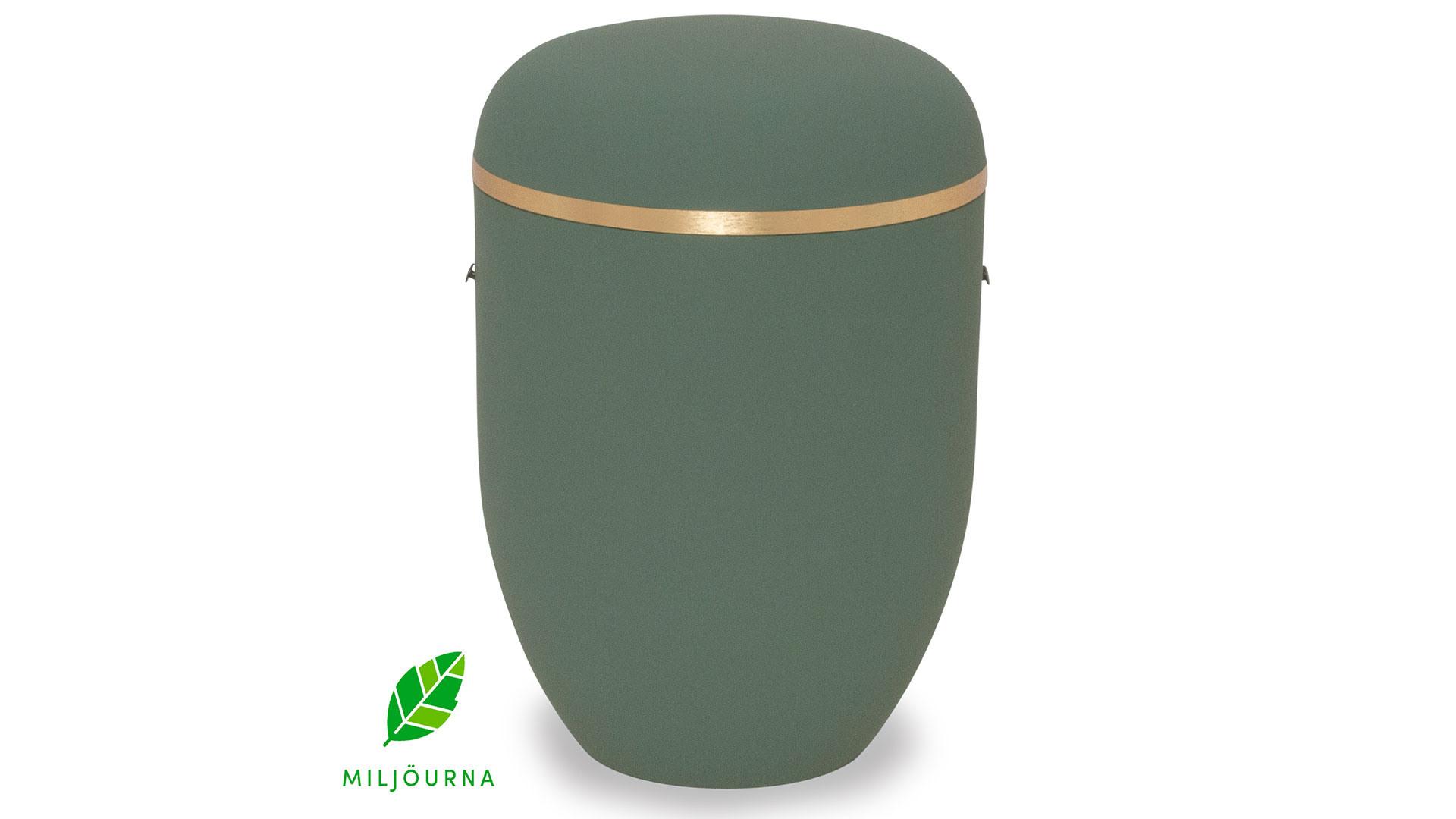 Sober är en stilren urna tillverkad av biofiber och är 100 % nedbrytbar. Denna variant är målad i en olivgrön kulör med en rand i guld. Urnan är förgänglig och har en stor öppning upptill vilket gör den lämplig för såväl gravsättning som för minneslund/askgravlund, där endast askpåse får användas. Levereras med sänkband.2 795 kr