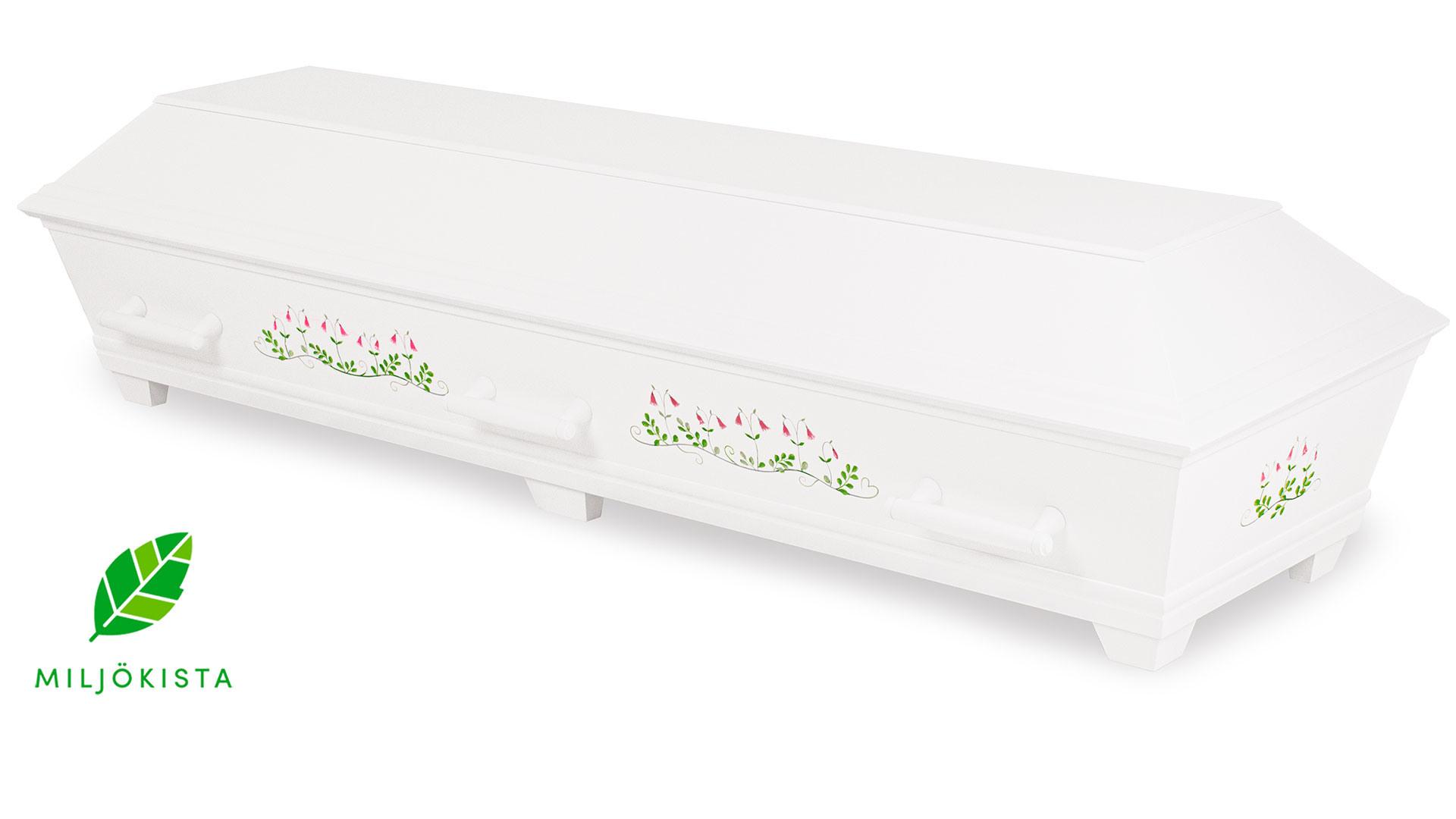 Tradition är en urna tillverkad av massivt och fanerat ekträ och är 100% nedbrytbar. Denna variant är målad i vitt med handmålad linneadekor. Urnan är förgänglig och lämplig för gravsättning. Levereras med sänkband.3 495 kr