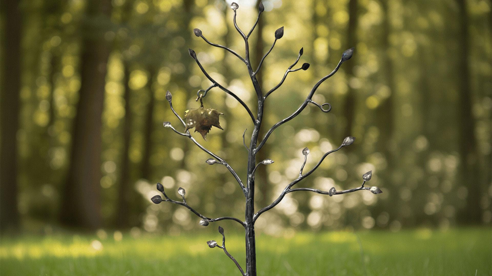 Stående minnesträd i smide som smyckas med handsmidda löv i mässing. Ett löv med gravyr ingår i priset. Det går att köpa till ytterligare löv mot en kostnad (max 6 stycken löv totalt).- Modell: Hög stående