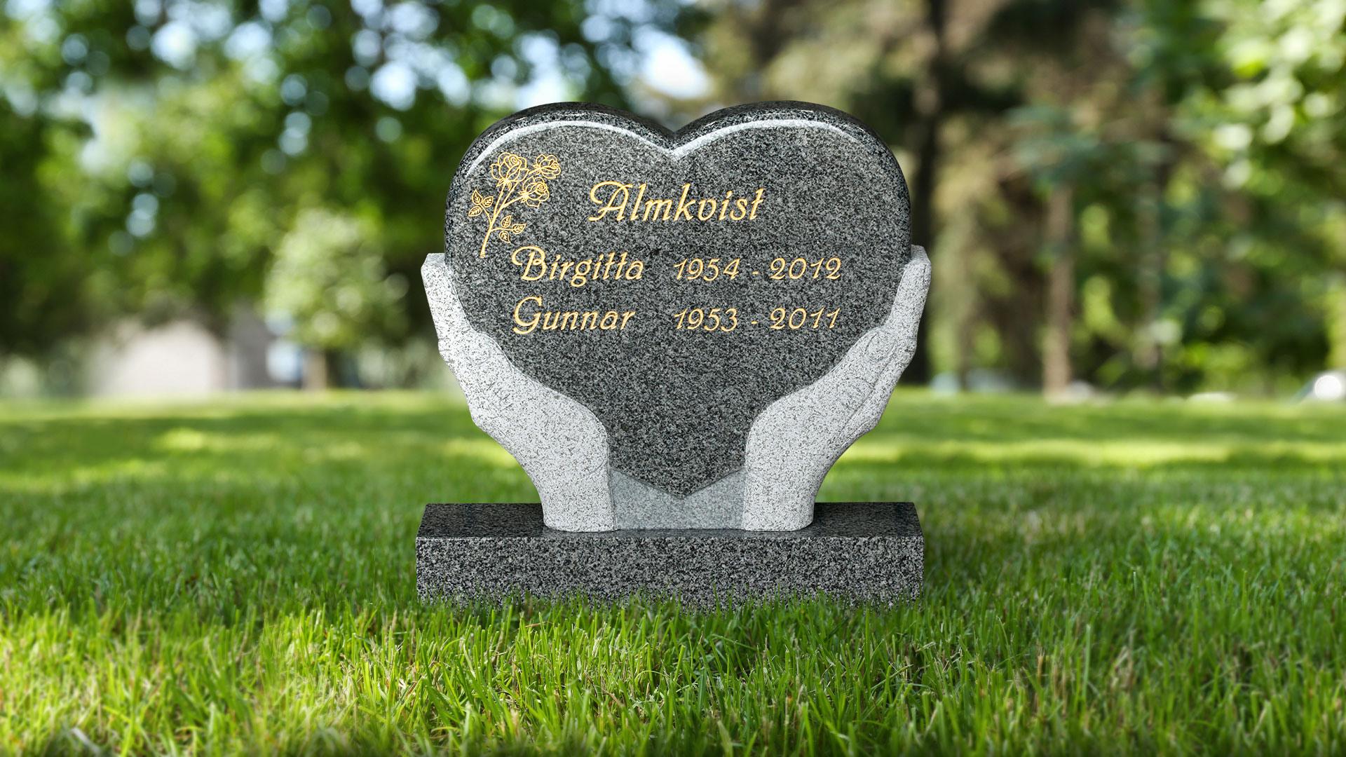 Hjärtformad stående sten i skulpterade händer.- Modell: Stående bred