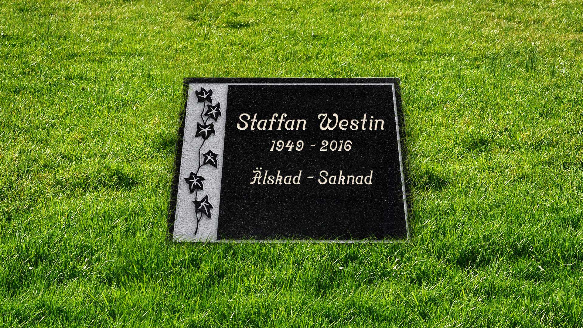 Liggande sten i klassisk rektangulär form.- Modell: Liggande