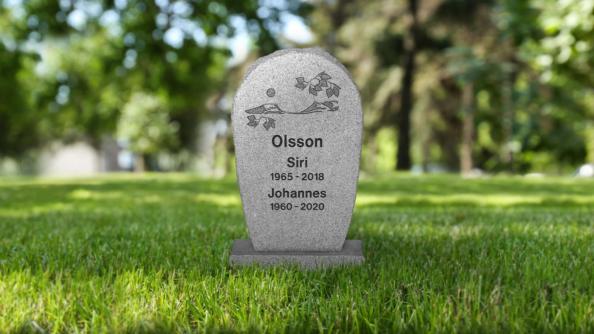 Stående sten med rundad ovansida.- Modell: Stående hög