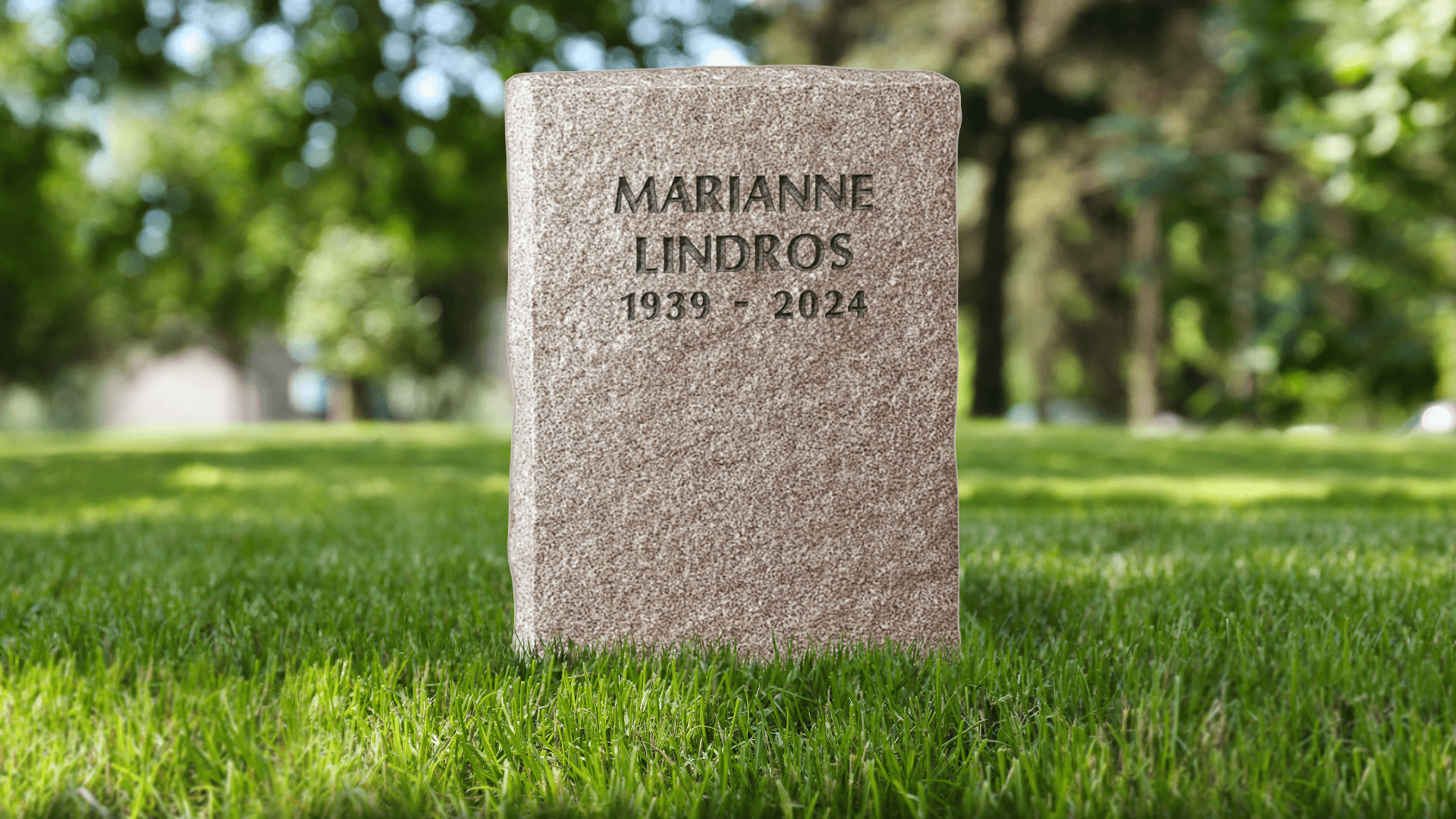 Stående sten i klassisk rektangulär form med råarbetad framsida och kanter.- Modell: Hög stående