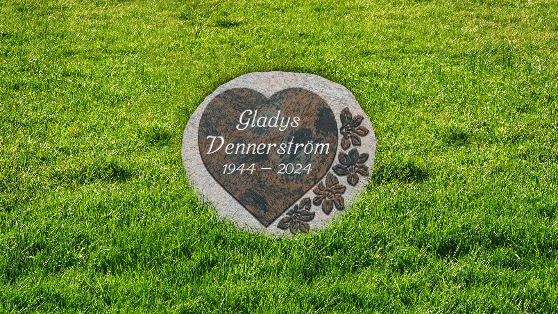 Liggande oval sten med hjärtformad textyta.- Modell: Liggande