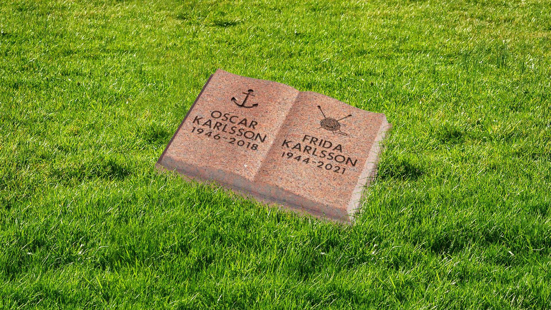 Liggande sten i klassisk rektangulär form.- Modell: Liggande