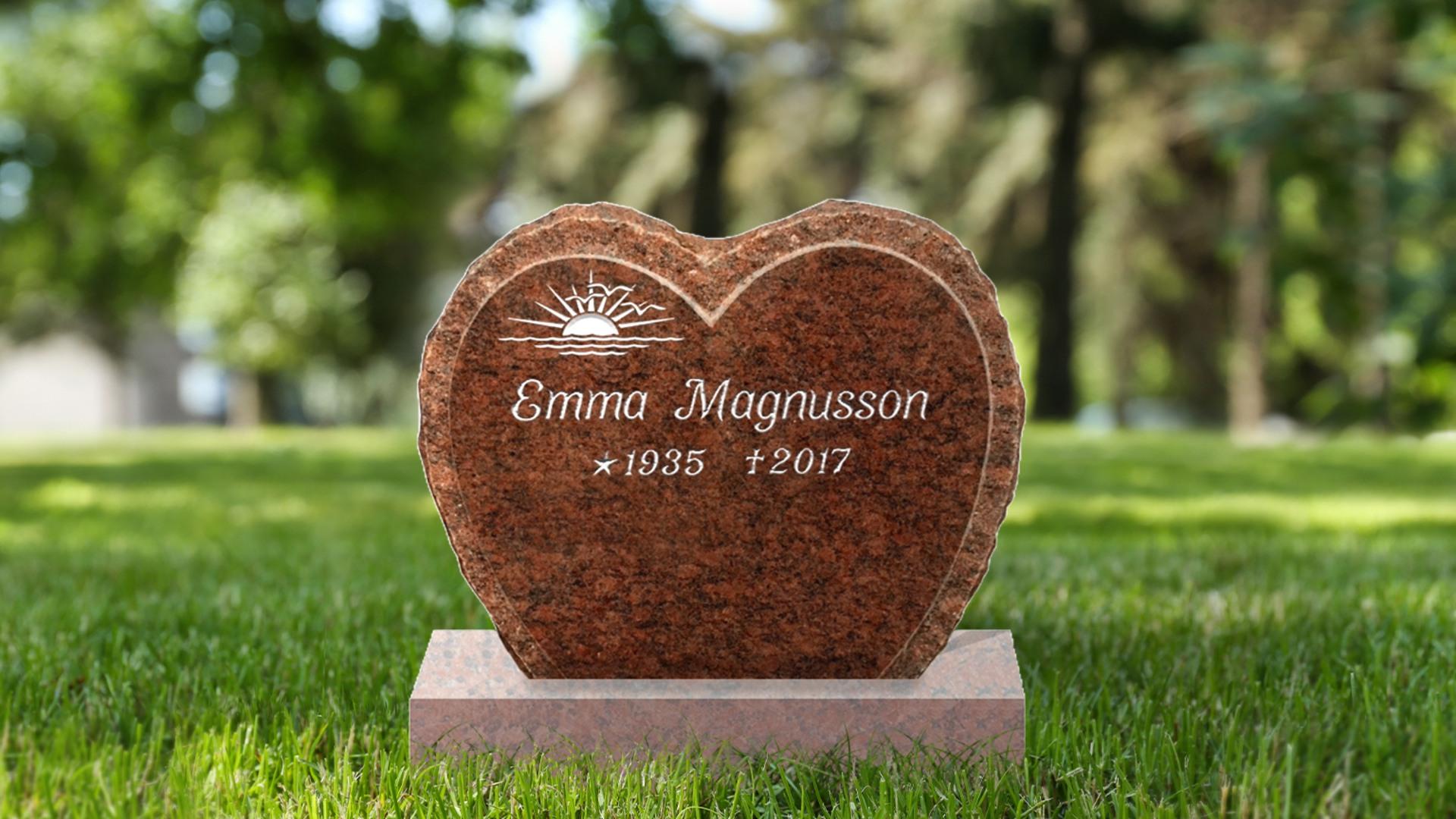 Hjärtformad stående sten med råhugget kantslag.- Modell: Bred stående