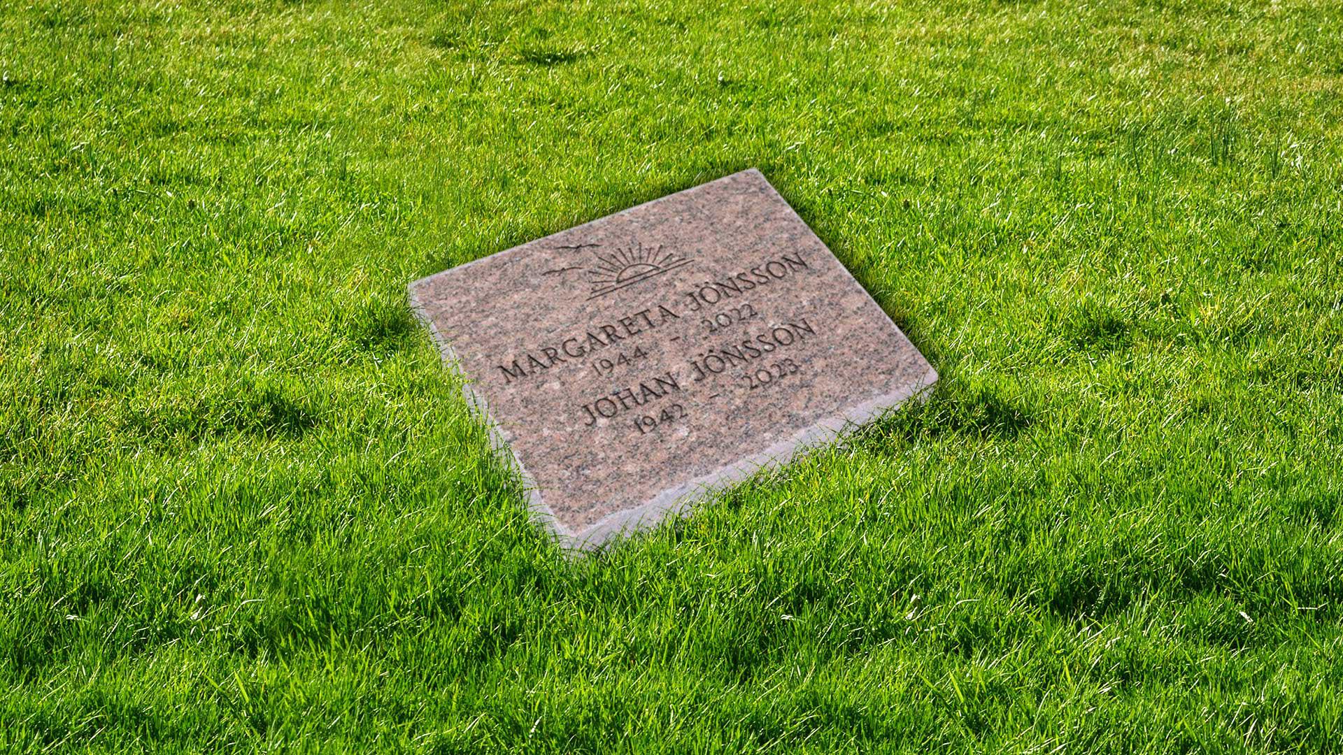 Liggande sten i klassisk rektangulär form.- Modell: Liggande