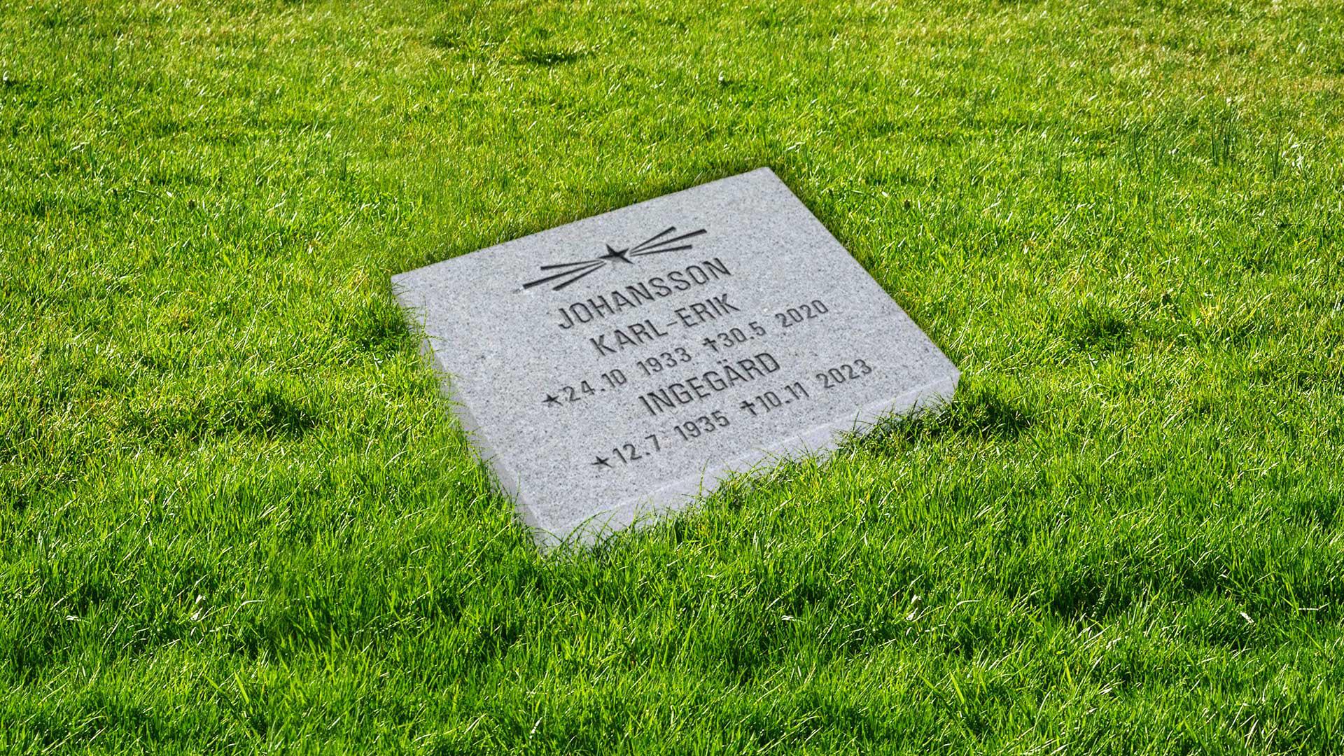 Liggande sten i klassisk rektangulär form.- Modell: Liggande