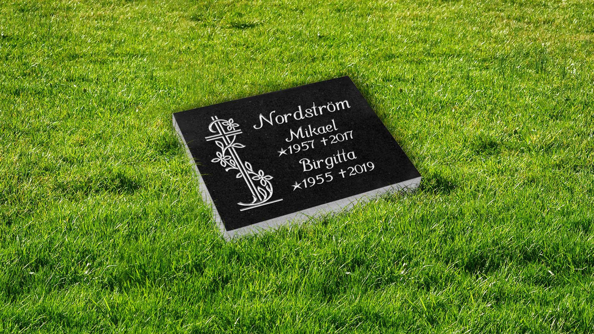 Liggande sten i klassisk rektangulär form.- Modell: Liggande