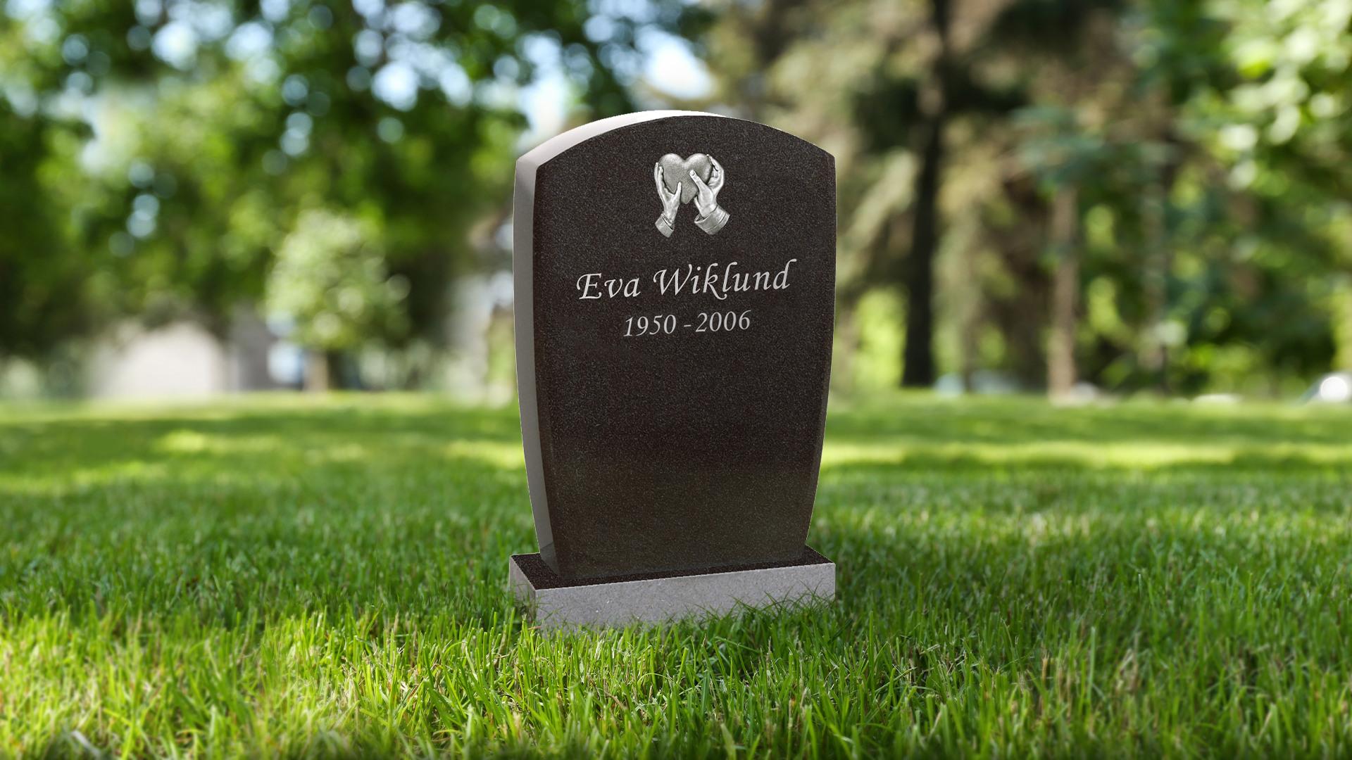 Stående sten med rundad ovansida. (Aluminiumdekoren i form av ett hjärta i händer, kan väljas till under tillbehör och ingår ej i priset).- Modell: stående/hög