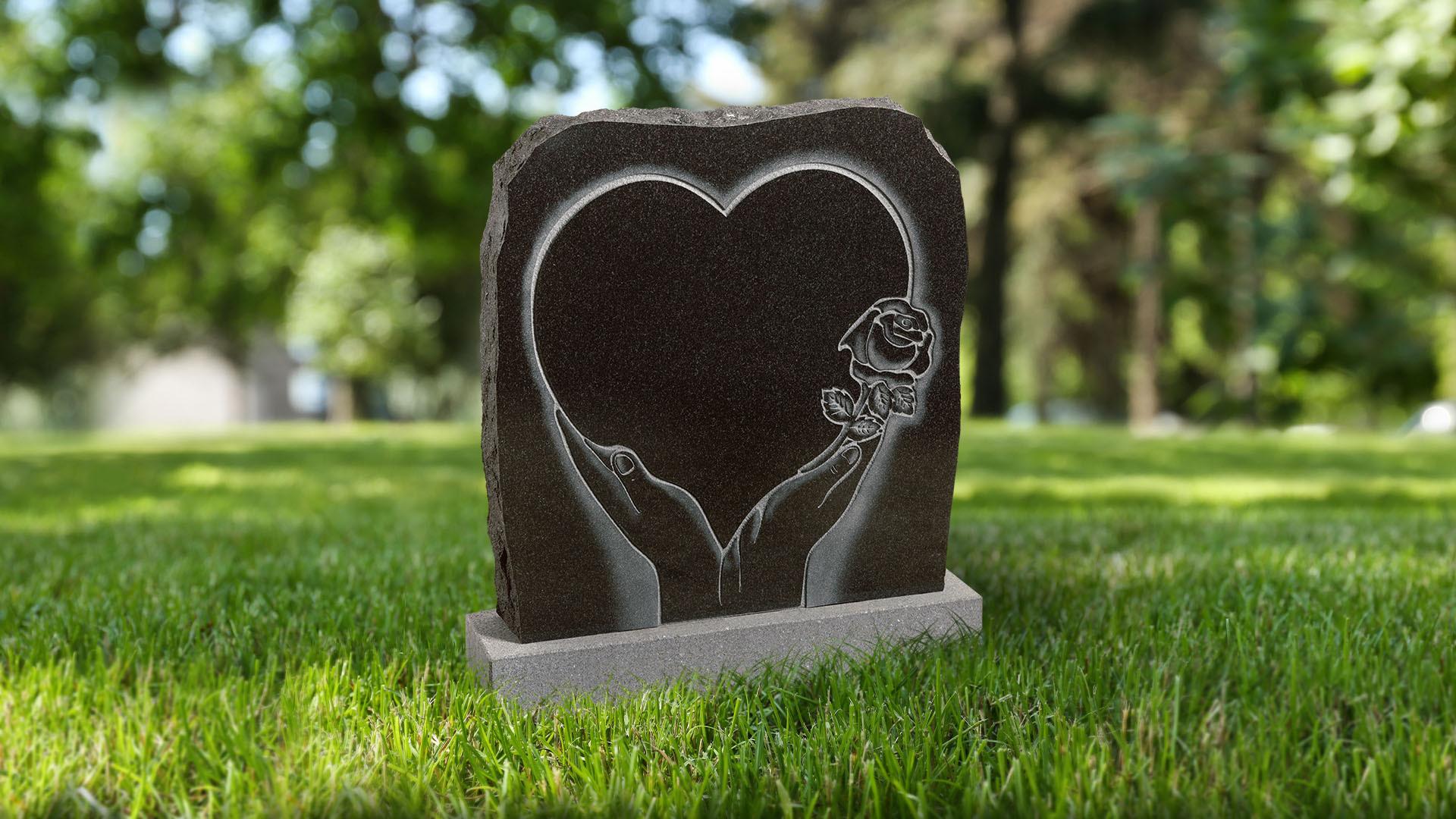 Stående sten med oregelbunden yttre form och motivet av ett hjärta- Modell: stående/hög