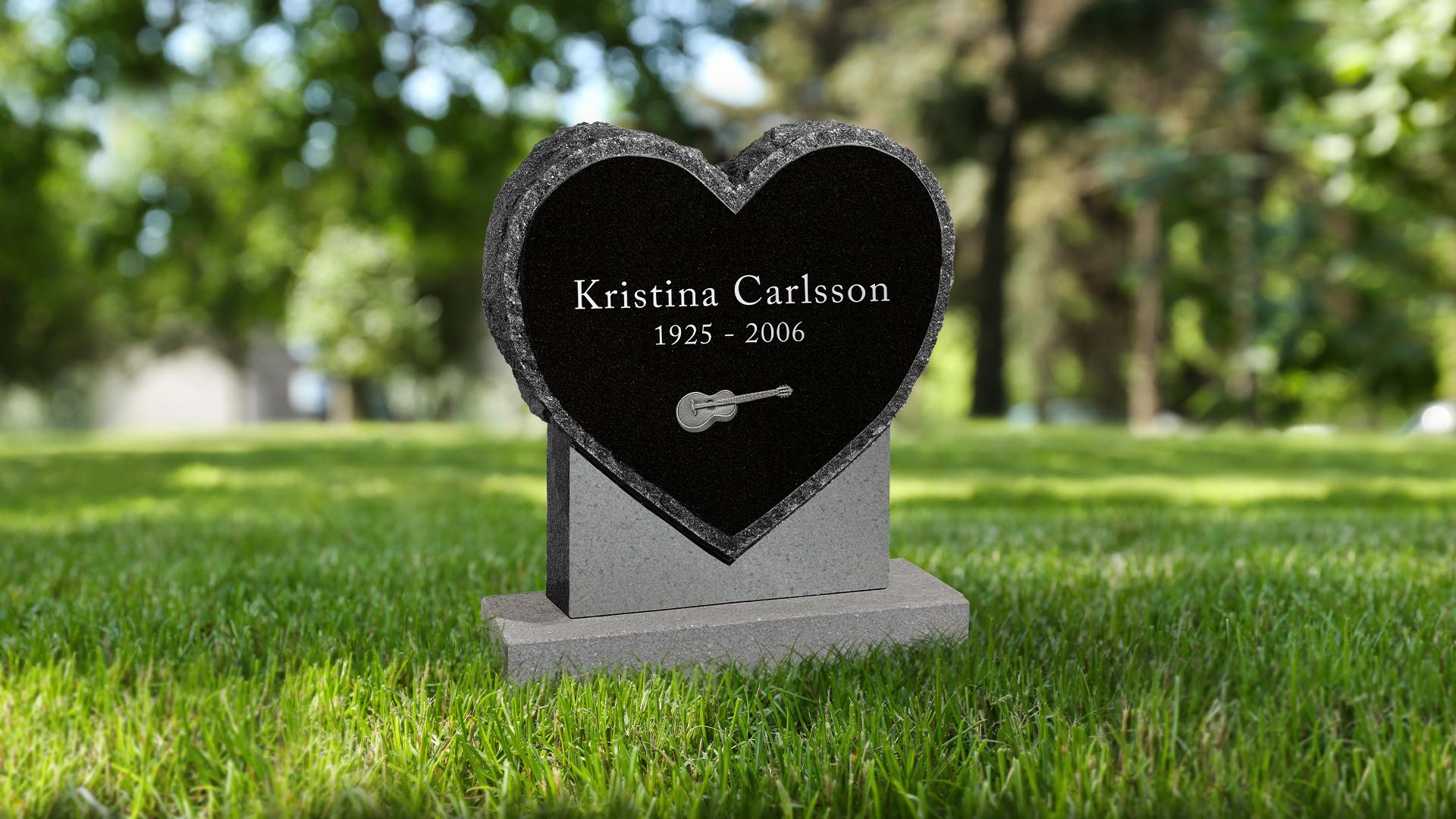 Stående hjärta med råarbetade kanter. (Aluminiumdekoren i form av en gitarr, kan väljas till under tillbehör och ingår ej i priset).- Modell: stående/hög