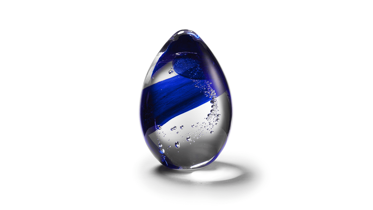 Minneskristallerna är handgjorda i Sverige och varje kristall är helt unik. Inne i kristallen finns en spiralformad dekoration som innehåller fossiliserat DNA från er älskade.