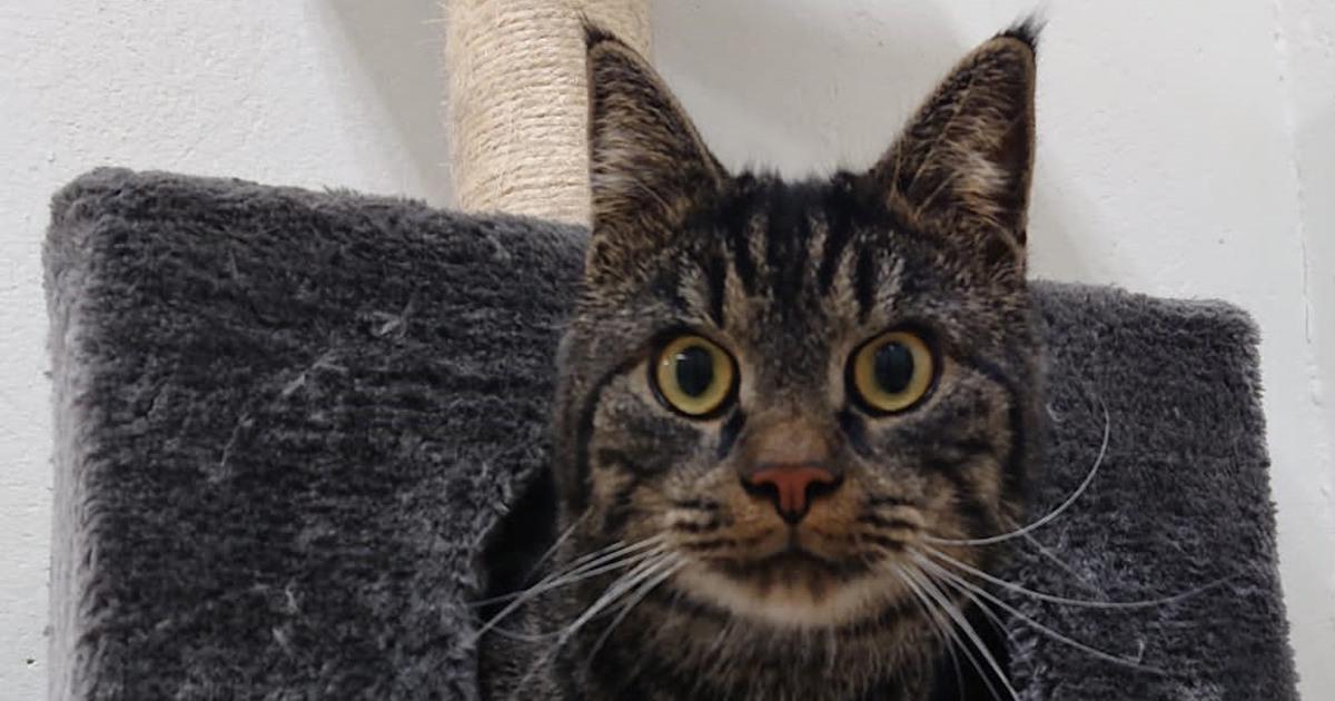 Den stiliga lilla herren Manfred fick komma till katthemmet i Eksjö där han blev väl omhändertagen. Efter ett par månader på katthemmet fick Manfred flytta till ett nytt hem med egna tvåbeningar tillsammans med en ny kattkompis. Lite spännande och läskigt tyckte Manfred, men mest skönt att äntligen kunna få boa in sig i ett tryggt hem igen.